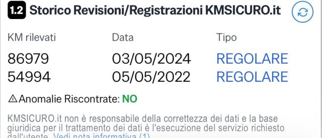 Revisione eseguita a km 86979 il 03/05/2024