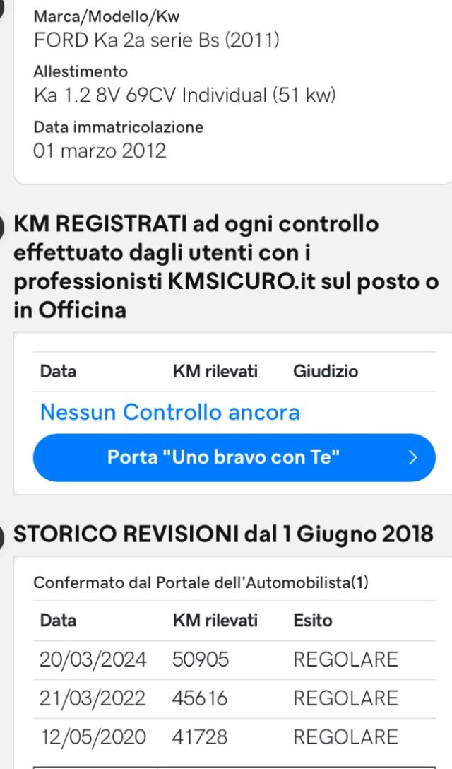 Unico proprietario, revisione eseguita il 20/03/2024 a km 50905.