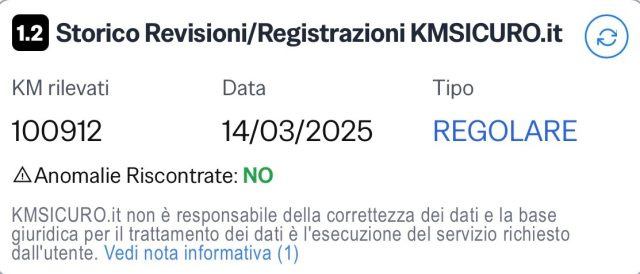 Prima revisione effettuata a km 100912 il 14/03/2025.