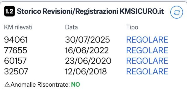 Revisione eseguita a km 94061 il 30/07/2025.